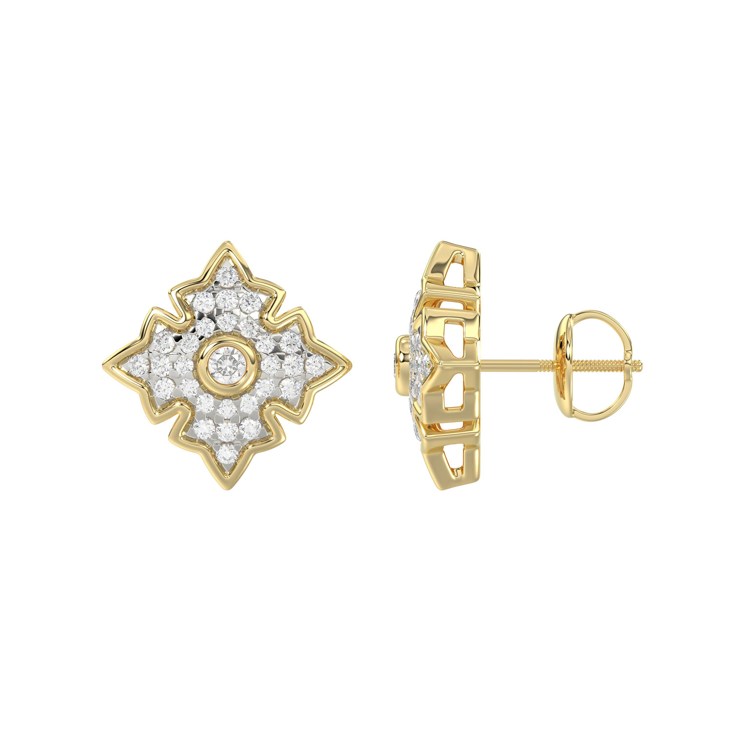 LADIES FLOWER EARRINGS 0.50CT ROUND DIAMOND 14K YELLOW GOLD