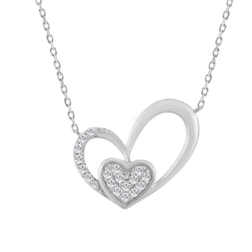 10K WHITE GOLD DOUBLE HEART DIAMOND PENDANT WITH CHAIN 0.15CT ROUND DIAMOND LADIES JEWELRY