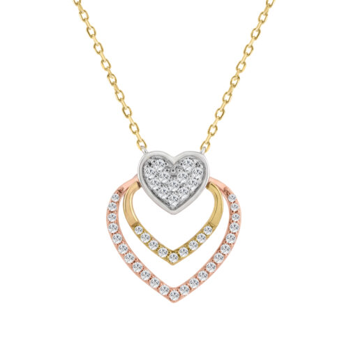 10K WHITE/YELLOW/ROSE GOLD LADIES FASHION HEART SHAPE PENDANT INCLUDES WITH CHAIN 0.25CT ROUND NATURAL DIAMOND
