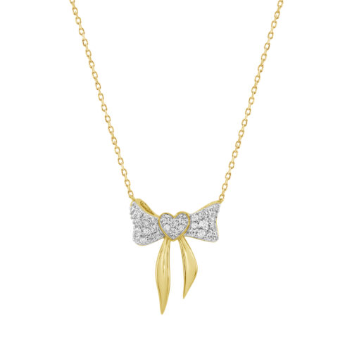 10K Yellow Gold Heart Bow Diamond Necklace 0.25CT Round Diamond Ladies Jewelry Gift