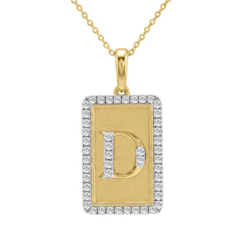 10K Yellow Gold letter ‘D’ Fashion Pendant With Chain – 0.20 CT Round Diamond Ladies Jewelry Gift