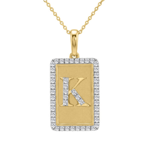 10K Yellow Gold letter ‘K’ Fashion Pendant With Chain – 0.20 CT Round Diamond Ladies Jewelry Gift