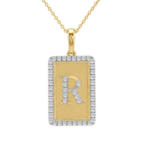 Elegant Ladies 0.20Ct Round Diamond “R Alphabet Fashion Pendant With Chain – 10K Yellow Gold