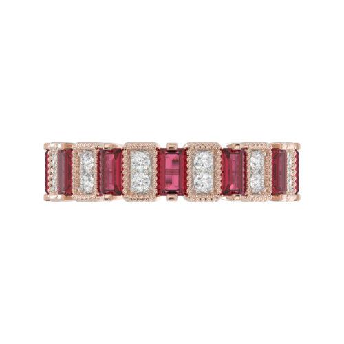 LADIES BAND 1.30CT ROUND/BAGUETTE RUBY DIAMOND 14K ROSE GOLD