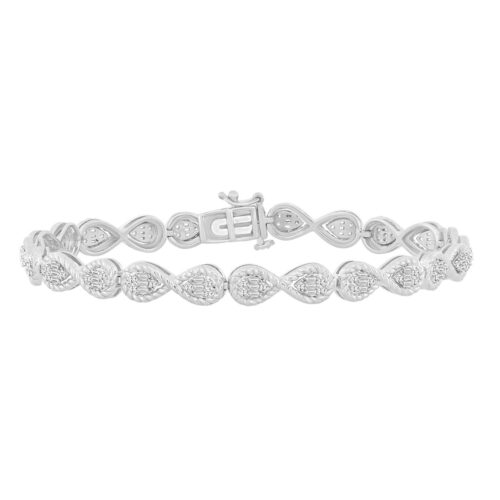 LADIES BRACELET 0.75CT ROUND/BAGUETTE DIAMOND 10K WHITE GOLD