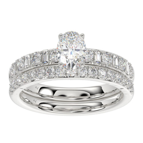 LADIES BRIDAL SET 1.50CT ROUND/BAGUETTE DIAMOND 14K WHITE GOLD (SI QUALITY) (OVAL DIAMOND-0.75CT)