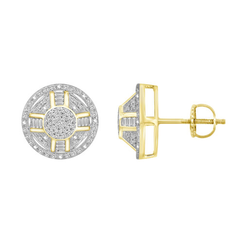 LADIES EARRINGS 0.33CT ROUND/BAGUETTE DIAMOND 10K YELLOW GOLD