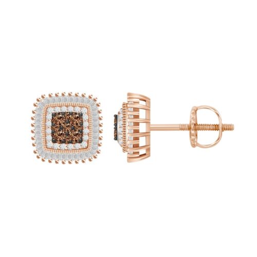 LADIES EARRINGS 0.50CT ROUND/BAGUETTE DARK BROWN DIAMOND 14K ROSE GOLD (SI QUALITY)
