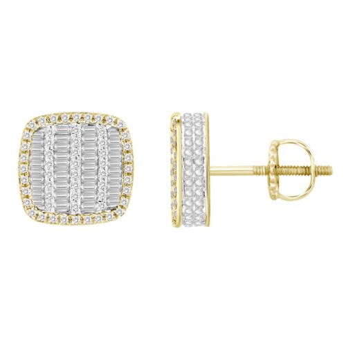 LADIES EARRINGS 0.75CT ROUND/BAGUETTE DIAMOND 10K YELLOW GOLD