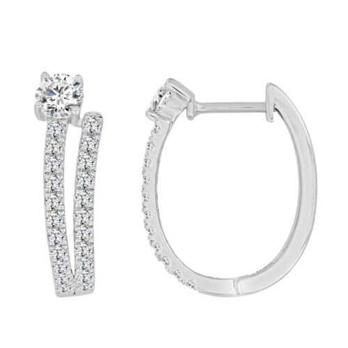 LADIES EARRINGS 1.00CT ROUND DIAMOND 14K WHITE GOLD