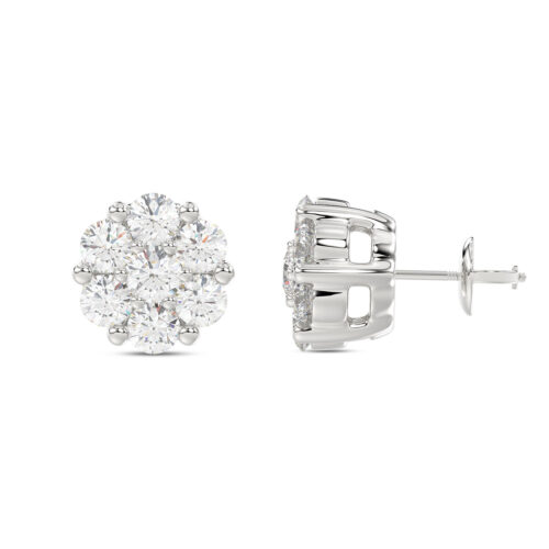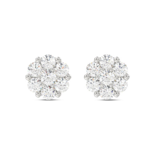 LADIES FLOWER EARRINGS 0.15CT ROUND DIAMOND 10K WHITE GOLD
