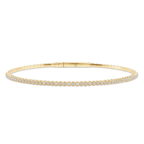 LADIES HALF FLEXIBLE BANGLE 1.00CT ROUND DIAMOND 14K YELLOW GOLD