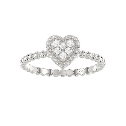 Ladies 0.10Ct Round Diamond Sterling Silver Ladies Ring White Heart Shape Cluster Halo Engagement Promise Ring For Her