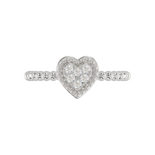 Ladies Halo Ring 0.10Ct Heart Shape Round Diamond Sterling Silver White