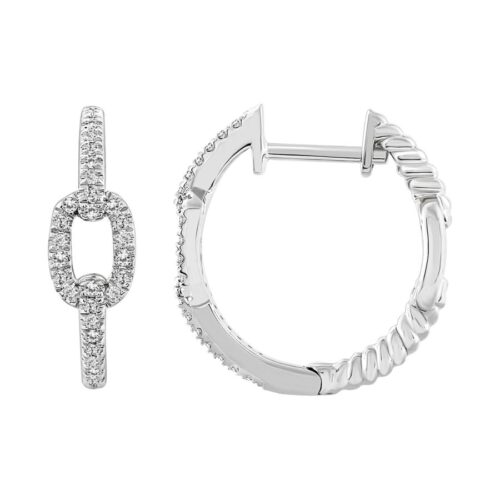 LADIES HOOP EARRINGS 0.15CT ROUND DIAMOND 10K WHITE GOLD