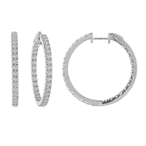 LADIES HOOP EARRINGS 1.50CT ROUND DIAMOND 14K WHITE GOLD (SI QUALITY)