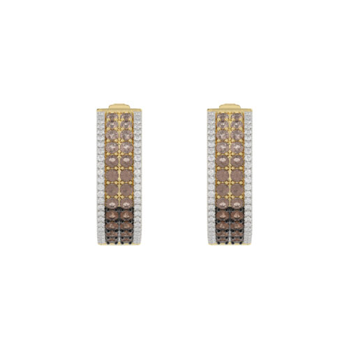 LADIES HOOPS EARRING 1.50CT ROUND/ROUND DARK BROWN DIAMOND 14K YELLOW GOLD