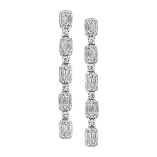 LADIES LINEAR EARRINGS 1.00CT ROUND/BAGUETTE DIAMOND 14K WHITE GOLD