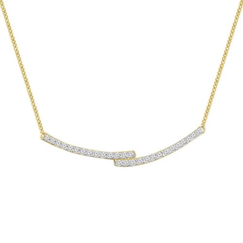 LADIES NECKLACE 0.20CT ROUND/BAGUETTE DIAMOND 10K YELLOW GOLD