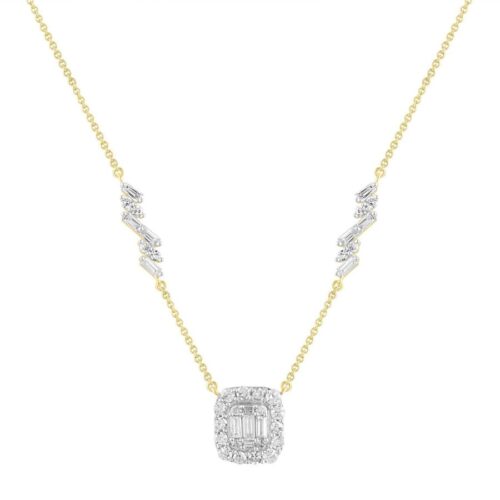 LADIES NECKLACE 1.00CT ROUND/BAGUETTE DIAMOND 14K YELLOW GOLD (SI QUALITY)