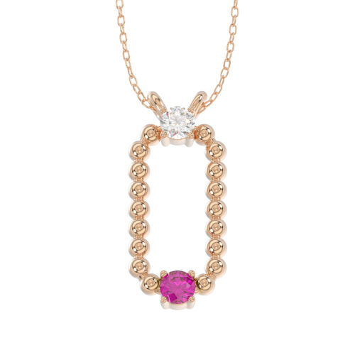 LADIES PENDANT WITH CHAIN 0.15CT ROUND/RUBY DIAMOND 14K ROSE GOLD (CENTER STONE ROUND/RUBY-0.10CT)