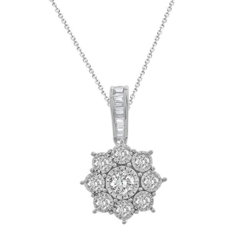 LADIES PENDANT WITH CHAIN 0.25CT ROUND/BAGUETTE DIAMOND 10K WHITE GOLD