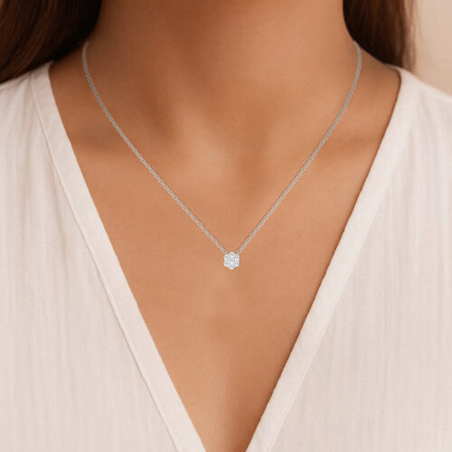 LADIES PENDANT WITH CHAIN 0.50CT ROUND DIAMOND 14K WHITE GOLD