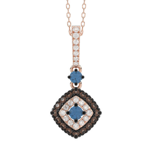 LADIES PENDANT WITH CHAIN 0.55CT ROUND/BLUE/DARK BROWN 14K ROSE GOLD (SI QUALITY)