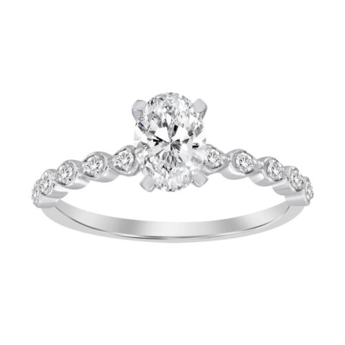 LADIES RING 0.15CT ROUND DIAMOND 14K WHITE GOLD (CENTER STONE 1.00CT OVAL DIAMOND)