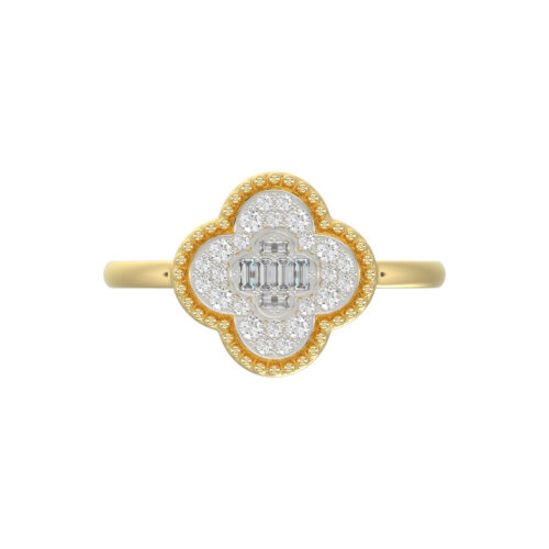 LADIES RING 0.25CT ROUND/BAGUETTE DIAMOND 10K YELLOW GOLD