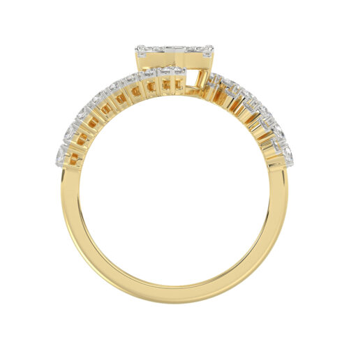 LADIES RING 0.65CT ROUND/BAGUETTE DIAMOND 14K YELLOW GOLD