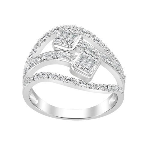 LADIES RING 0.75CT ROUND/BAGUETTE DIAMOND 14K WHITE GOLD