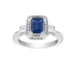 LADIES RING 1.50CT ROUND/PRINCESS/BLUE SAPPHIRE EMERALD DIAMOND 14K WHITE GOLD (CENTER STONE 0.90CT BLUE SAPPHIRE EMERALD DIAMOND)