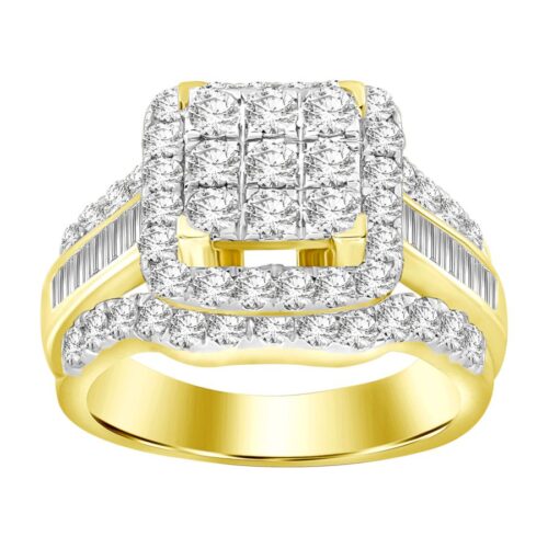 LADIES RING 2.00CT ROUND/BAGUETTE DIAMOND 10K YELLOW GOLD
