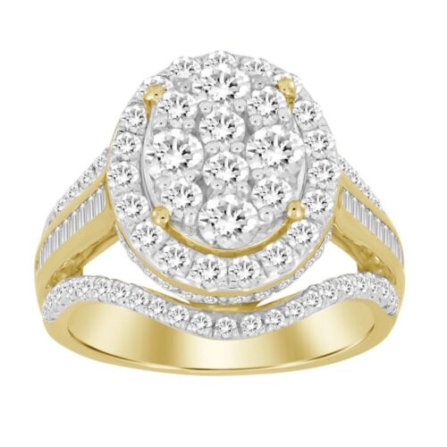 LADIES RING 2.00CT ROUND/BAGUETTE DIAMOND 10K YELLOW GOLD