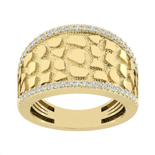 Men’S 10K Yellow Gold Diamond Nugget Ring 0.50Ct Round Diamond,Stylish Men’S Wedding & Fashion Ring