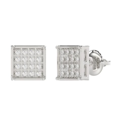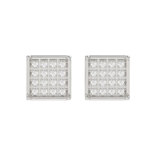 Sterling Silver White 0.10CT Round Diamond Yuva Square Cluster Earrings Women’S Fine Jewelry