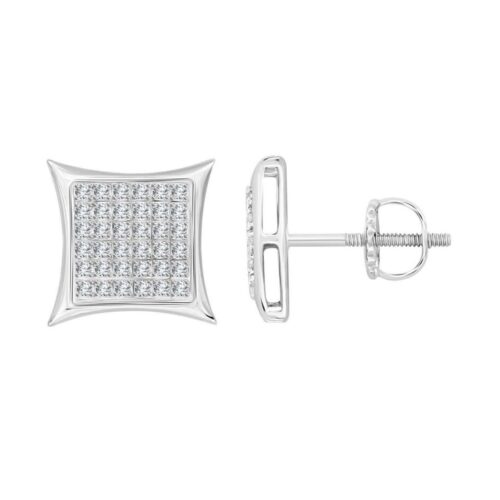 Sterling Silver White 0.25CT Round Diamond Yuva Square Cluster Earrings Women’S Fine Jewelry