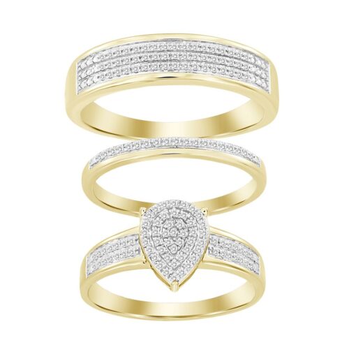 UNISEX TRIOS SET 0.33CT ROUND DIAMOND 10K YELLOW GOLD
